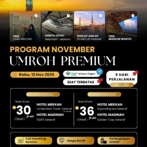 Umroh November program 9 Hari by Saudi Air, mulai 29,9 Juta